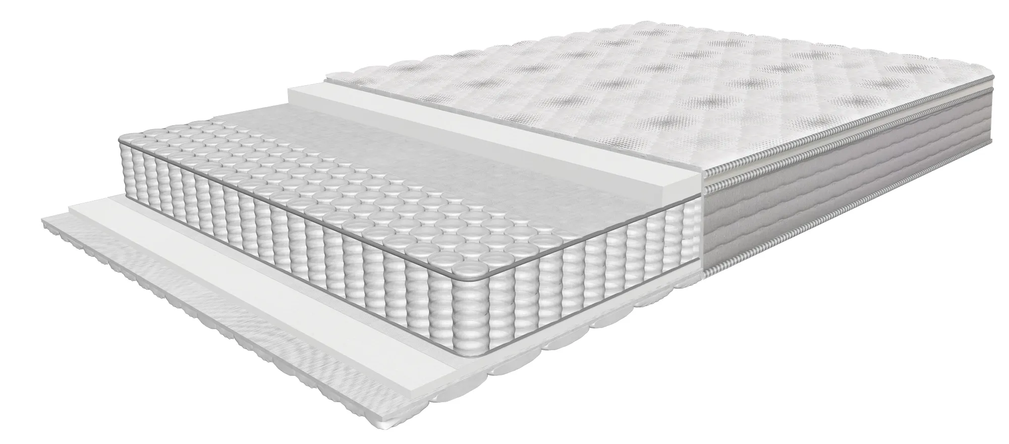 Metāla rāmis – piešķir matracim izturību un stabilitāti, nodrošinot tā kalpošanu gadiem ilgi.